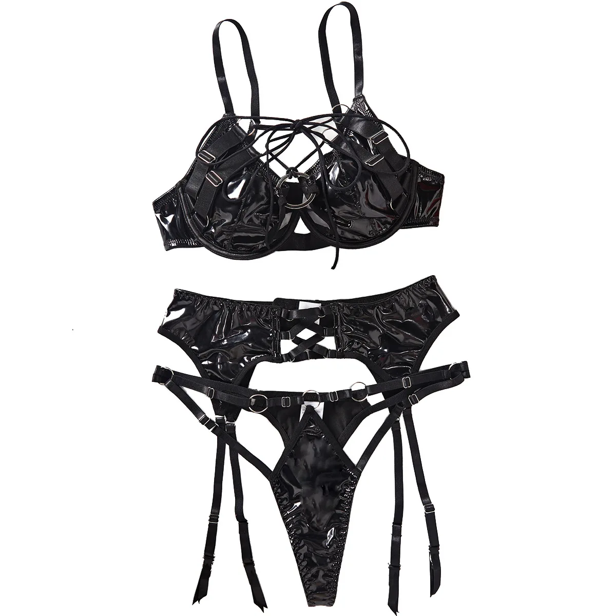 2025 New Arrival Women's Sexy Lingerie Set Hot Sales Mature Love Styles PU Underwear
